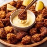 Air Fryer Chicken Karaage is a crispy and flavorful Japanese-style fried chicken made with bite-sized marinated chicken thigh pieces coated in potato starch and air fried to golden perfection. This recipe offers a healthier twist on a classic fried favorite, delivering juicy, tender chicken with a crunchy exterior without deep frying. Perfect served with lemon wedges, kewpie mayonnaise, sriracha, and traditional Japanese sides like marinated cucumber and pickled vegetables.