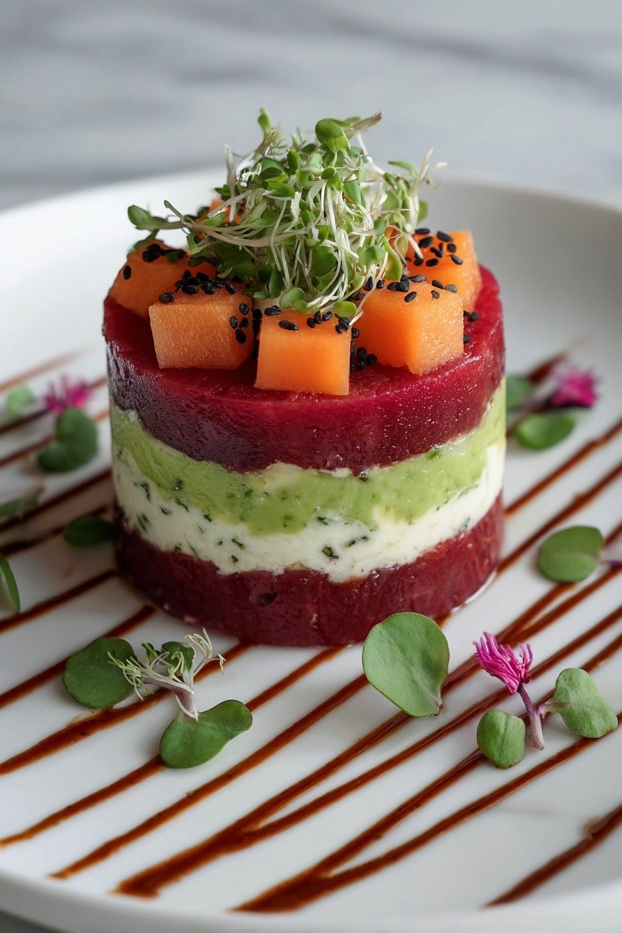 Whenever I prepare this tartare stack, it feels like a little celebration of fresh ingredients and simple technique. Whether it’s a light lunch, a fresh appetizer for guests, or a colorful addition to your weekend menu, you’ll notice how effortlessly it elevates the mood at the table. No heavy sauces, no fuss — just layers of flavor that feel both indulgent and wholesome.