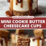 Delight in these Mini Cookie Butter Cheesecake Cups, featuring a crunchy Biscoff cookie crust topped with a smooth, creamy cookie butter cheesecake filling. Finished with a drizzle of caramel sauce, extra cookie crumbs, whipped cream, and a whole Biscoff cookie garnish, these no-bake treats are perfect for parties or a decadent dessert anytime.