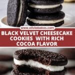 These Black Velvet Cheesecake Cookies combine the rich, deep flavor of black cocoa with a creamy cheesecake filling. Soft, tender cookies are crowned with smooth, tangy cheesecake centers, creating a luxurious treat perfect for any occasion.