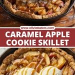 This Caramel Apple Cookie Skillet is a delectable autumn-inspired dessert featuring browned butter cookie dough topped with warmly spiced, caramelized apples. Baked in a skillet to achieve golden edges and a soft, chewy center, it is perfect served warm with a scoop of vanilla ice cream for a cozy treat.