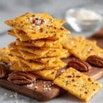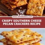 Southern Cheese Pecan Crackers are crispy, buttery crackers made with sharp cheddar cheese, pecans, and a blend of spices. These flaky treats are perfect for snacking or entertaining, offering a savory, slightly spicy kick with every bite.