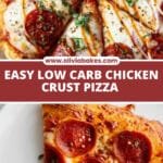 This Chicken Crust Pizza is a delicious low-carb alternative to traditional pizza, made with a protein-packed ground chicken crust that’s crispy on the edges and tender inside. Topped with savory pizza sauce, melted mozzarella cheese, and your favorite herbs, it’s a flavorful, gluten-free meal perfect for a quick weeknight dinner or casual weekend treat.