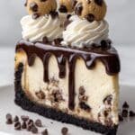 This decadent Chocolate Chip Cookie Dough Pumpkin Cheesecake combines the best of fall flavors and classic treats. Featuring a chocolate Oreo crust, a creamy pumpkin-spiced cheesecake layer, and edible cookie dough balls baked right on top, this dessert is finished with a rich chocolate ganache and optional whipped cream. Perfect for holiday celebrations or any special occasion, this cheesecake blends pumpkin and chocolate chip cookie dough in a unique and irresistible way.