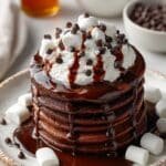 Indulge in these soft hot chocolate pancakes, perfect for a cozy breakfast or brunch. Made with rich cocoa powder and studded with mini chocolate chips, these fluffy pancakes combine the comforting flavors of hot chocolate with the classic pancake texture. Topped with mini marshmallows and a drizzle of chocolate syrup, this recipe is a delightful treat for chocolate lovers of all ages.