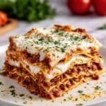 8. Rest and Serve: Let the lasagna rest for 10 minutes before slicing. Garnish with fresh parsley or basil and serve warm.
