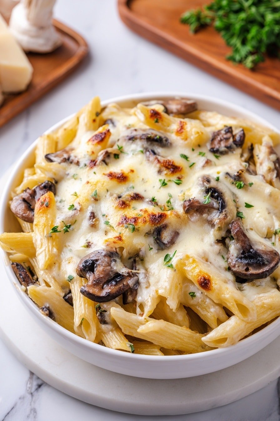 Before diving in, I always like to have my ingredients prepped and ready. This mise en place approach cuts down on scrambling mid-cook and lets you focus on the enjoyable part—the cooking itself. Preheat your oven to 375°F (190°C) ahead of time so it’s ready once your mushroom mix is assembled and topped. Slicing mushrooms uniformly helps ensure even cooking and texture in the finished dish.