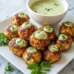 These Crispy Salmon Bites are flavorful, bite-sized meatballs made with finely chopped salmon, seasoned with garlic powder, paprika, and fresh parsley, then baked to perfection. Served with a creamy, tangy avocado sauce, they make a delightful appetizer or snack that’s both healthy and delicious.