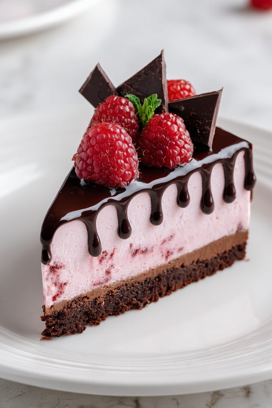 What always strikes me is the way the smooth chocolate layer marries with the freshness of the raspberries — it’s like a little burst of spring inside a luscious, creamy dessert. You’ll notice how the lightly crisp chocolate cookie crust grounds all those flavors beautifully, adding a subtle texture contrast that just makes every bite feel complete.