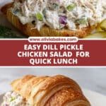 A creamy and tangy Savory Dill Pickle Chicken Salad combining shredded chicken with dill pickles, celery, and a flavorful Greek yogurt-based dressing. Perfect served on croissants or fresh greens, this refreshing salad blends crisp textures with fresh herbs for a delicious and easy-to-make meal or snack.