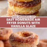 These easy air fryer donuts are a delightful homemade treat perfect for breakfast or dessert. Made with a soft, yeast-leavened dough, they are quickly cooked in the air fryer for a healthier alternative to traditional fried donuts. Finished with a rich vanilla glaze, these donuts are fluffy, tender, and full of flavor with a perfectly golden exterior.