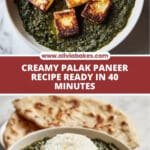 • Can I prepare palak paneer ahead of time? Yes! The flavors develop beautifully after resting, so making it a few hours or even a day ahead is a great idea.