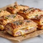 This Ham and Cheese Puff Pastry recipe is a delightful combination of flaky, buttery puff pastry filled with savory sliced deli ham and melted Gruyère cheese. Enhanced with a hint of Dijon mustard and finished with a golden egg wash and optional everything bagel seasoning, these pastries make a perfect appetizer, snack, or light meal that’s easy to prepare and bake to perfection.