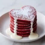 - Serve: Serve the heart-shaped red velvet pancakes warm, topped with syrup, whipped cream, or your favorite toppings.