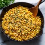 Honey Butter Skillet Corn is a quick and delicious side dish featuring sweet frozen corn cooked in a luscious honey butter sauce with creamy cream cheese and a touch of seasoning. Perfect for adding a sweet and savory flair to any meal, this skillet corn recipe is easy to prepare and irresistibly comforting.