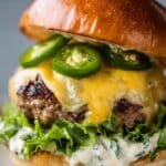 These Jalapeño Popper Turkey Burgers are a flavorful twist on traditional turkey burgers, packed with spicy jalapeños, smoky bacon, and a creamy cheese topping reminiscent of the classic jalapeño popper appetizer. Perfectly juicy turkey patties are cooked to golden perfection and topped with a rich, cheesy blend of cream cheese, Monterey Jack, sharp cheddar, bacon, and fresh herbs, all served on toasted buns with fresh lettuce and tomato. Ideal for a delicious and satisfying weeknight meal or weekend cookout.