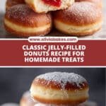 This classic recipe for Jelly-Filled Donuts features light, fluffy fried dough filled with your favorite fruit jelly or preserves and finished with a sweet sugar coating. Perfect for a homemade treat, these donuts are made from a yeasted dough that rises twice before being fried to golden perfection and filled with luscious jelly for a delightful surprise in every bite.