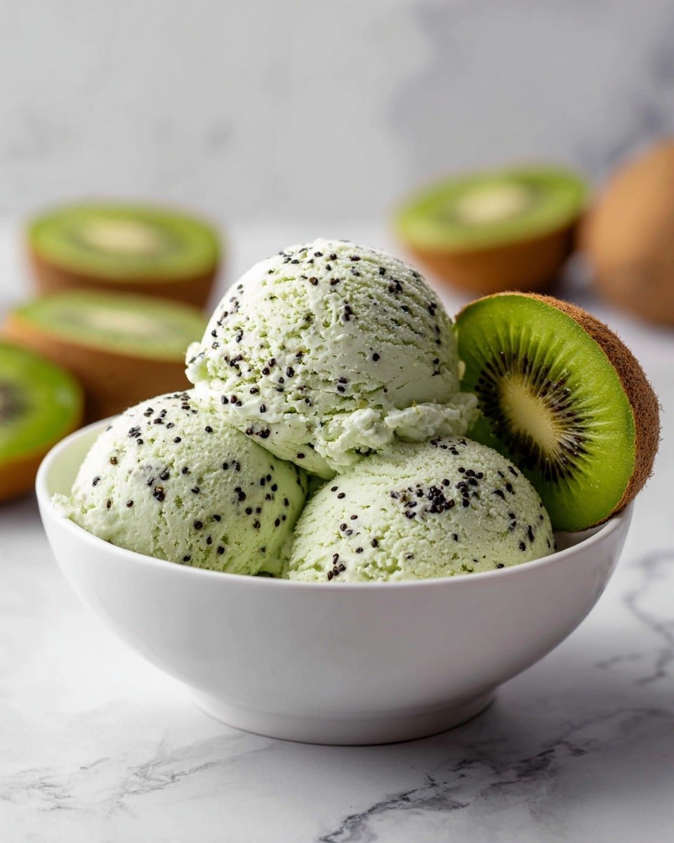 To deepen the kiwi’s vibrancy, use fruits that yield slightly under gentle pressure but aren’t mushy. When making sugar syrup, avoid boiling vigorously—it can mute the fresh flavors. Also, chilling the combined mixture thoroughly before freezing ensures a creamier sorbet with less iciness.