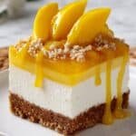 - Garnish and serve: When ready, add extra mango slices or a sprinkle of crushed graham crackers on top for an inviting presentation. Slice into squares and serve chilled, savoring the blend of golden mango sweetness and rich creaminess with each bite.