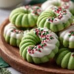 Delight in these beautifully vibrant Matcha Butter Cookies, perfectly balanced with the earthy flavor of matcha and the sweet richness of white chocolate. These cookies are piped into delicate rings, chilled to maintain shape, baked to a tender crisp, and finished with a luscious white chocolate dip and festive sprinkles, making them a stunning treat for any occasion.