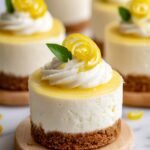 Mini Lemon Cheesecakes are delightful individual-sized desserts featuring a creamy lemon-flavored filling nestled on a crisp graham cracker crust. Lightly tangy and sweet, these cheesecakes are perfect for any occasion and can be garnished with fresh berries and whipped cream for an elegant touch.