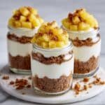 These No-Bake Apple Cheesecake Jars are a delightful dessert featuring a crunchy graham cracker crust, smooth and creamy cheesecake filling, topped with sweet apple pie filling or sautéed cinnamon apples. Perfect for an easy, make-ahead treat that requires no oven time.