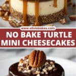 These No Bake Turtle Mini Cheesecakes are a decadent and easy-to-make dessert featuring a buttery graham cracker crust, creamy vanilla cheesecake filling, and a luscious homemade chocolate ganache drizzle. Topped with caramel sauce, chopped pecans, and mini chocolate chips, they provide a perfect bite-sized indulgence reminiscent of classic turtle candies without any baking required.