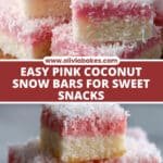 Pink Coconut Snow Bars are a delightful, soft-textured treat perfect for any occasion. These bars feature a tender crumb infused with vanilla and a subtle sweetness, baked to golden perfection. The recipe is straightforward and ideal for bakers seeking a tasty, homemade bar cookie with a classic flavor profile.