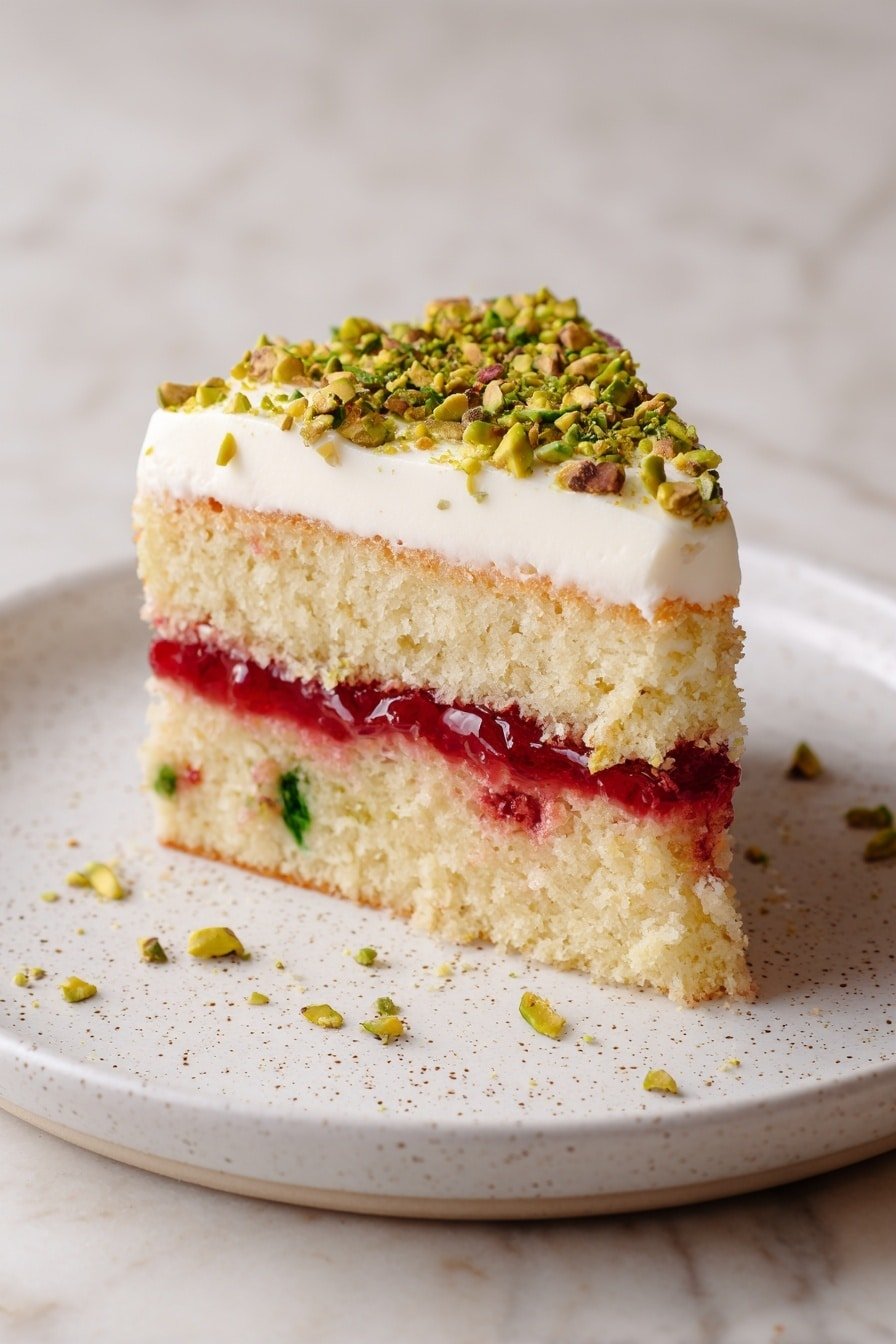 When I think of weekend baking that wraps you in warmth and delight, my Pistachio Raspberry Cake Recipe comes straight to mind. This cake has that little touch of elegance from pistachios paired with the bright, tangy sweetness of raspberries—a duo that always feels like a comforting hug. I love how the golden crumb has a tender crumb with a subtle crunch from the ground nuts. The raspberry jam and creamy mascarpone balance it perfectly, adding luscious layers you’ll savor with every bite. You’ll notice how the lemon zest adds a gentle aromatic lift that brightens the whole experience without overpowering it. This isn’t just cake; it’s a cozy moment you’ll want to return to again and again. Whether you’re hosting friends or just treating yourself to a calm afternoon pause, this Pistachio Raspberry Cake Recipe feels special yet very approachable—and that’s why it’s become one of my favorites to make and share.