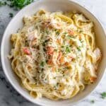 - Serve: Plate the crab Alfredo immediately, garnishing with chopped fresh parsley and extra freshly grated Parmesan cheese. Enjoy your delicious seafood pasta!