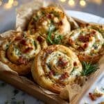 These Savory Christmas Pinwheels with Bacon & Cheese are perfect festive appetizers featuring crispy bacon, creamy cheeses, and a flaky puff pastry base. Easy to prepare and baked to golden perfection, they are a crowd-pleasing snack for holiday gatherings or special occasions.