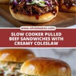 These Pulled Beef Sandwiches feature tender, slow-cooked beef chuck roast rubbed with aromatic spices and simmered in a tangy, flavorful sauce. Served on toasted brioche or potato rolls with a creamy vinegar-based coleslaw and pickles, this hearty sandwich is perfect for a comforting meal or a gathering with friends.