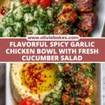 Spicy Garlic Chicken Bowl with Hummus & Cucumber Salad Recipe