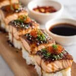 There’s something truly comforting about the way the spicy mayo crust bakes over the salmon, creating a lightly crisp top that contrasts perfectly with the soft, vinegared rice beneath. When I make this, the kitchen fills with this aromatic promise — sesame, tangy rice vinegar, and that spicy hint from the Sriracha that wakes up your senses.