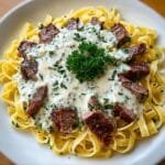 This Olive Garden-inspired Steak Gorgonzola Alfredo is a decadent and flavorful dish featuring tender sirloin steak served over al dente fettuccine pasta tossed in a rich Gorgonzola and Parmesan creamy Alfredo sauce. Perfect for a cozy dinner that combines savory steak with the creamy tang of blue cheese.