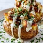 - Spoon the warm Parmesan cream sauce generously over the stuffed potatoes—don’t be shy! Let it cascade into every crevice for that irresistible richness that defines this recipe.