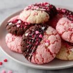 You’ll love how the dough, beginning with a strawberry cake mix, creates a tender crumb with just a hint of softness inside. Then, when dipped in chocolate and sprinkled with a touch of decadence, these cookies become a small act of joy. I find it’s not just the flavors but the whole experience — mixing, baking, then waiting for that perfect set of chocolate — that makes the process so rewarding.