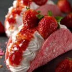 Strawberry Cookie Boats are delightful pink shortbread cookies shaped like little boats, filled with a luscious mascarpone and cream filling, topped with fresh strawberries and a glossy strawberry jam glaze. Perfectly balanced between buttery, creamy, and fruity flavors, these elegant treats are ideal for dessert or a special occasion tea-time snack.