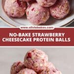 Delight in these no-bake Strawberry Cheesecake Protein Balls, combining creamy cream cheese, sweet freeze-dried strawberries, and protein-packed ingredients for a healthy and satisfying snack perfect for any time of day.