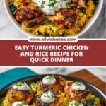 - Serve: Spoon the turmeric chicken and rice into bowls and top with a dollop of Greek yogurt if desired for added creaminess and tang.