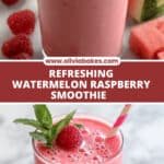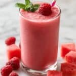 A Refreshing Watermelon Raspberry Smoothie that combines juicy watermelon, tart frozen raspberries, creamy Greek yogurt, and a splash of fresh lemon juice for a revitalizing, healthy drink perfect for a hot day or a quick breakfast.